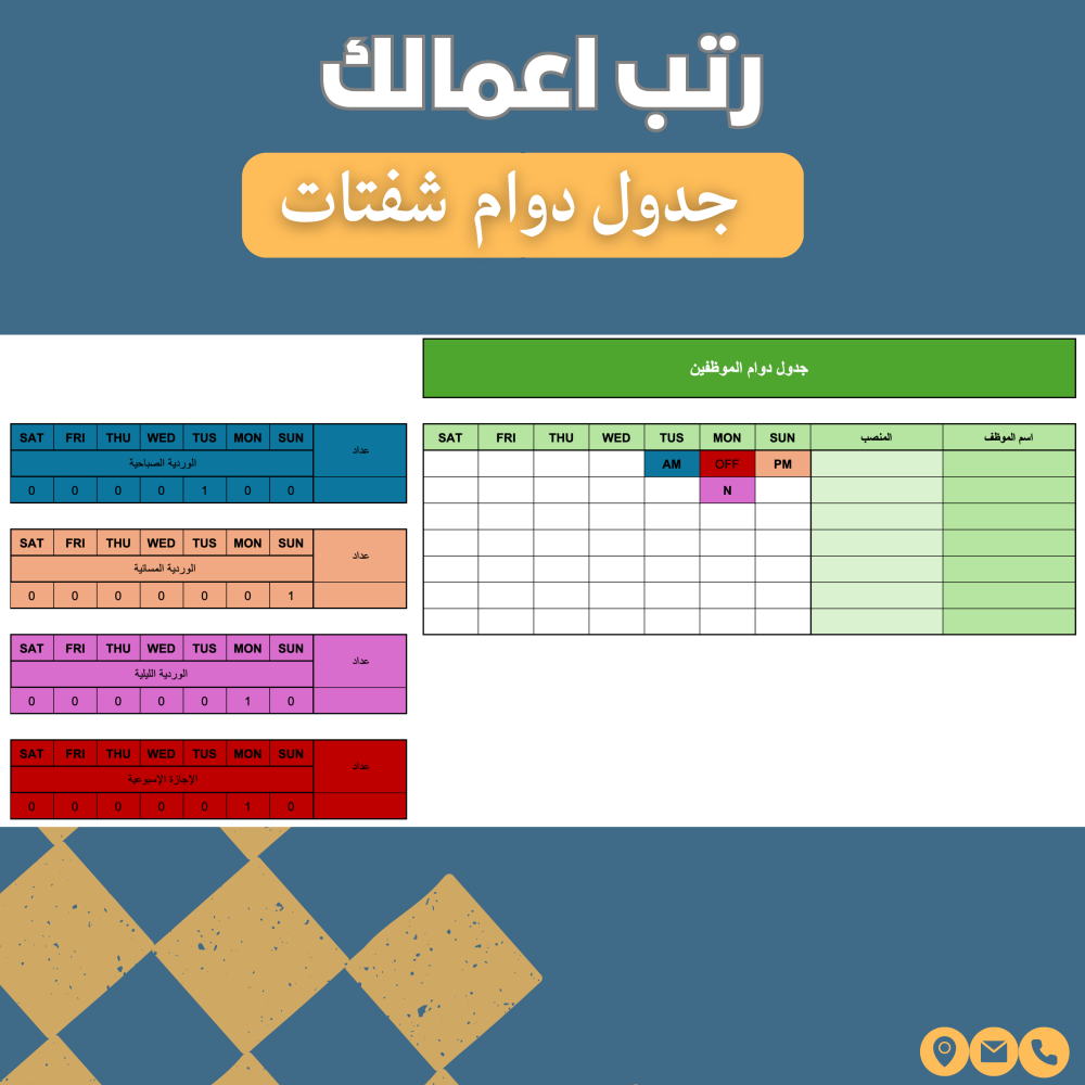 ✔ تقسيم واضح للشفتات (☀ صباحية - 🌇 مسائية - 🌙 ليلية - 🛌 إجازة)