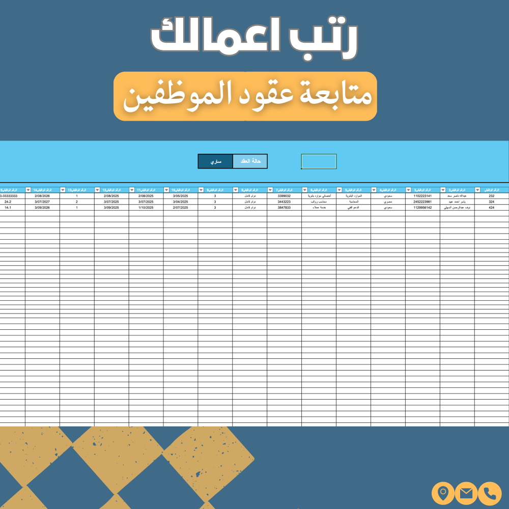 تم تصميم الملف ليسهّل على فريق الموارد البشرية متابعة العقود بدقة واحترافية: